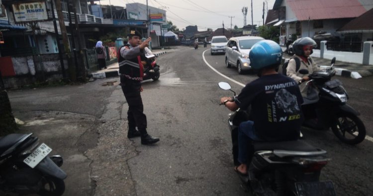 Sejumlah personel tampak ditempatkan di ruas jalan utama untuk membantu penyeberangan pelajar dan pengguna jalan, sekaligus memberikan imbauan kepada pengendara agar tertib berlalu lintas dan mematuhi aturan yang berlaku.